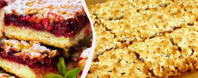 Den Teig in zwei Teile teilen – 13 davon eine Stunde lang in den Gefrierschrank legen, den anderen Teil (23 der Gesamtmenge) mit einem Nudelholz ausrollen, in eine Backform geben und die Ränder formen. Eine Schicht Marmelade darauf verteilen und mit gehackten Walnüssen bestreuen. Wenn die kleinere Hälfte des Teigs fest geworden ist, reiben Sie sie auf einer Reibe über das entstandene Arbeitsstück. Den geriebenen Kuchen mit Marmelade bei 180 Grad Celsius 25 Minuten im Ofen backen, bis er gebräunt ist.