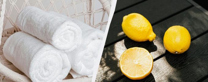 Mit Zitronensaft oder -säure lassen sich auch die schwierigsten Flecken auf Ihrem Handtuch entfernen. Wie man Küchentücher zu Hause aufhellt / collage